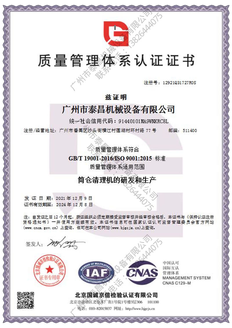廣州市泰昌機械設備有限公司公司致力于工業機械化生產,專業研發和生產自有專利的自動化筒倉清理設備,有一整套筒倉清理系統及解決方案。